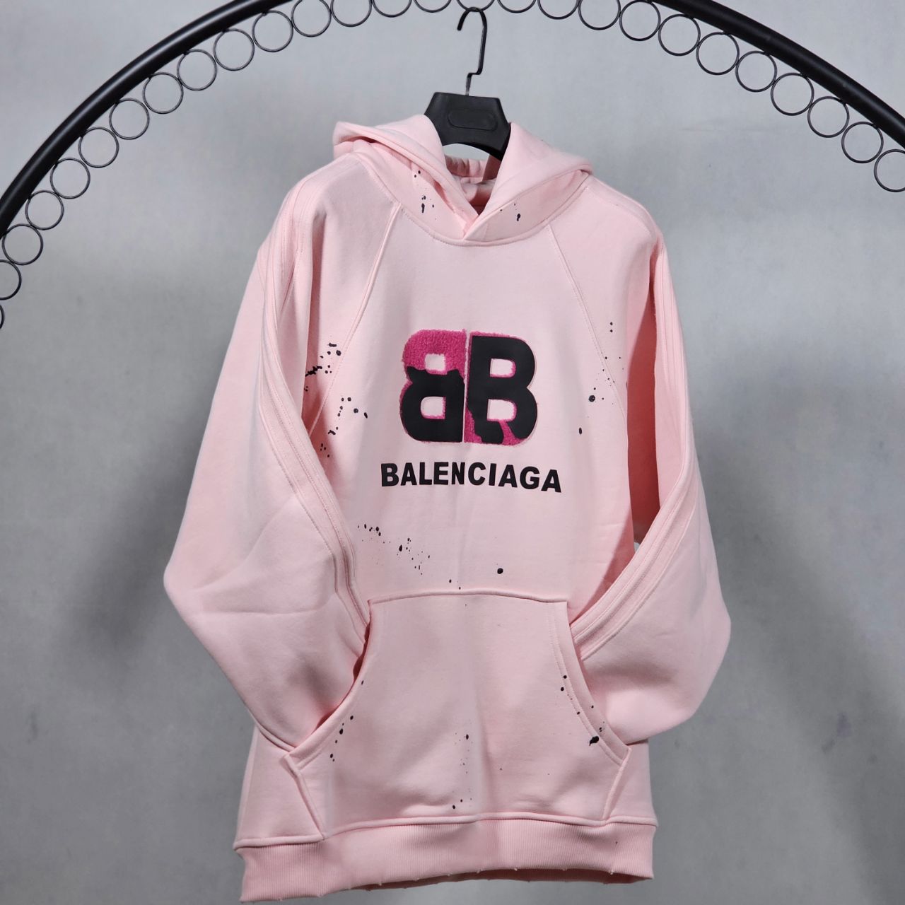 هودی بالنسیاگا صورتی گلدوزی شده لش | مستر کوالیتی وارداتی